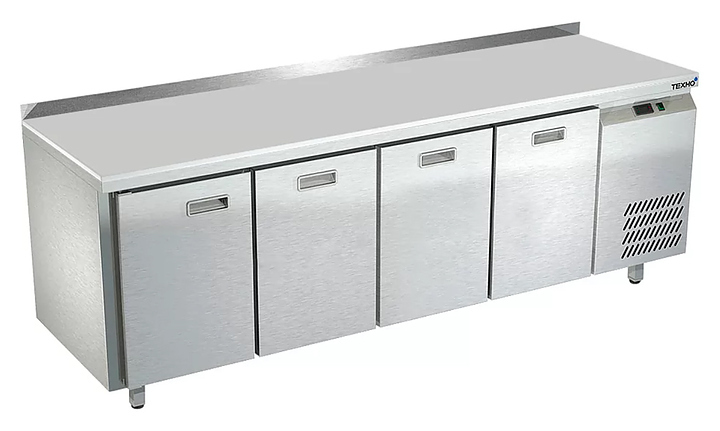Морозильный стол Техно-ТТ СПБ/М-622/13-2206 предназначен для раскатки теста, обработки, заморозки и долговременного хранения продуктов, полуфабрикатов, напитков и мороженого на предприятиях общественного питания и торговли. Модель оснащена 1 секцией с дверью и регулируемой полкой-решеткой, 3 секциями с 3 ящиками, направляющими с доводчиками (Австрия), петлями-доводчиками (Польша), бортом и круглыми ножками, регулируемыми по высоте на 50 мм (Италия). Корпус выполнен из нержавеющей стали AISI 430, задняя стенка и дно - из оцинкованной стали, столешница - из полипропилена.