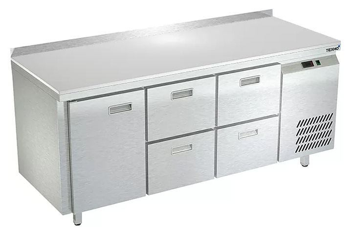 Морозильный стол Техно-ТТ СПБ/М-622/14-1807 предназначен для раскатки теста, обработки, заморозки и долговременного хранения продуктов, полуфабрикатов, напитков и мороженого на предприятиях общественного питания и торговли. Модель оснащена 1 секцией с дверью и регулируемой полкой-решеткой, 2 секциями с 4 ящиками, направляющими с доводчиками (Австрия), петлями-доводчиками (Польша), бортом и круглыми ножками, регулируемыми по высоте на 50 мм (Италия). Корпус выполнен из нержавеющей стали AISI 430, задняя стенка и дно - из оцинкованной стали, столешница - из полипропилена.