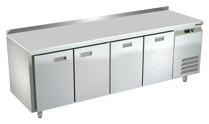 Морозильный стол Техно-ТТ СПБ/М-622/22-2207 предназначен для раскатки теста, обработки, заморозки и долговременного хранения продуктов, полуфабрикатов, напитков и мороженого на предприятиях общественного питания и торговли. Модель оснащена 2 секциями с 2 дверьми и регулируемой полкой-решеткой, 2 секциями с 2 ящиками, направляющими с доводчиками (Австрия), петлями-доводчиками (Польша), бортом и круглыми ножками, регулируемыми по высоте на 50 мм (Италия). Корпус выполнен из нержавеющей стали AISI 430, задняя стенка и дно - из оцинкованной стали, столешница - из полипропилена.