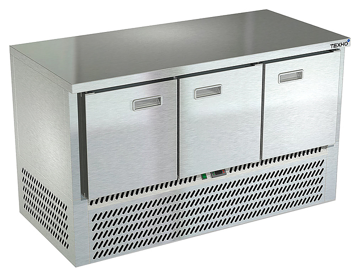 Морозильный стол Техно-ТТ СПН/М-121/30-1406 предназначен для раскатки теста, обработки, заморозки и долговременного хранения продуктов, полуфабрикатов, напитков и мороженого на предприятиях общественного питания и торговли. Модель оснащена компрессором, произведенным в Испании, 3 дверями с доводчиками (Польша), 3 регулируемыми по высоте полками-решетками и регулируемыми опорными ножками. Корпус и столешница выполнены из нержавеющей стали AISI 430, задняя стенка и дно - из оцинкованной стали.