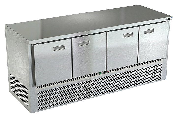 Морозильный стол Техно-ТТ СПН/М-121/40-1907 предназначен для раскатки теста, обработки, заморозки и долговременного хранения продуктов, полуфабрикатов, напитков и мороженого на предприятиях общественного питания и торговли. Модель оснащена компрессором, произведенным в Испании, 4 дверями с доводчиками (Польша), 4 регулируемыми по высоте полками-решетками и регулируемыми опорными ножками. Корпус и столешница выполнены из нержавеющей стали AISI 430, задняя стенка и дно - из оцинкованной стали.