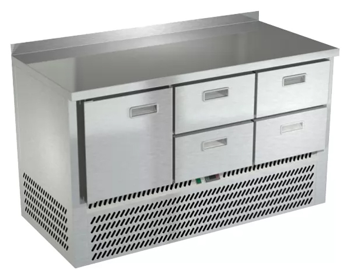 Морозильный стол Техно-ТТ СПН/М-222/14-1406 предназначен для раскатки теста, обработки, заморозки и долговременного хранения продуктов, полуфабрикатов, напитков и мороженого на предприятиях общественного питания и торговли. Модель оснащена компрессором, произведенным в Испании, 1 дверью с доводчиком (Польша), 1 регулируемой по высоте полкой-решеткой, 4 гастронормированными ящиками, направляющими с доводчиками (Австрия) и регулируемыми опорными ножками. Корпус и столешница выполнены из нержавеющей стали AISI 430, задняя стенка и дно - из оцинкованной стали.