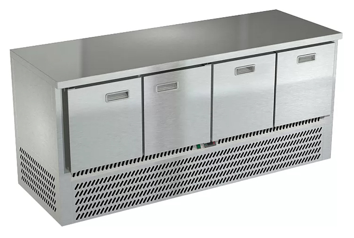 Морозильный стол Техно-ТТ СПН/М-222/22-1907 предназначен для раскатки теста, обработки, заморозки и долговременного хранения продуктов, полуфабрикатов, напитков и мороженого на предприятиях общественного питания и торговли. Модель оснащена компрессором, произведенным в Испании, 2 дверями с доводчиками (Польша), 2 регулируемыми по высоте полками-решетками, 2 гастронормированными ящиками, направляющими с доводчиками (Австрия) и регулируемыми опорными ножками. Корпус и столешница выполнены из нержавеющей стали AISI 430, задняя стенка и дно - из оцинкованной стали.
