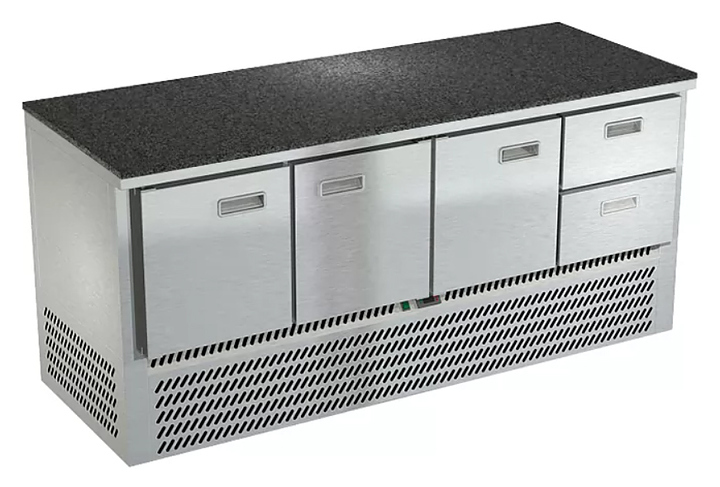 Морозильный стол Техно-ТТ СПН/М-322/32-1906 предназначен для раскатки теста, обработки, заморозки и долговременного хранения продуктов, полуфабрикатов, напитков и мороженого на предприятиях общественного питания и торговли. Модель оснащена компрессором, произведенным в Испании, 3 дверями с доводчиками (Польша), 3 регулируемыми по высоте полками-решетками, 2 гастронормированными ящиками, направляющими с доводчиками (Австрия) и регулируемыми опорными ножками. Корпус выполнен из нержавеющей стали AISI 430, задняя стенка и дно - из оцинкованной стали, столешница - каменная.