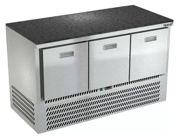 Морозильный стол Техно-ТТ СПН/М-323/03-1406 предназначен для раскатки теста, обработки, заморозки и долговременного хранения продуктов, полуфабрикатов, напитков и мороженого на предприятиях общественного питания и торговли. Модель оснащена компрессором, произведенным в Испании, 3 гастронормированными ящиками, направляющими с доводчиками (Австрия) и регулируемыми опорными ножками. Корпус выполнен из нержавеющей стали AISI 430, задняя стенка и дно - из оцинкованной стали, столешница - каменная.