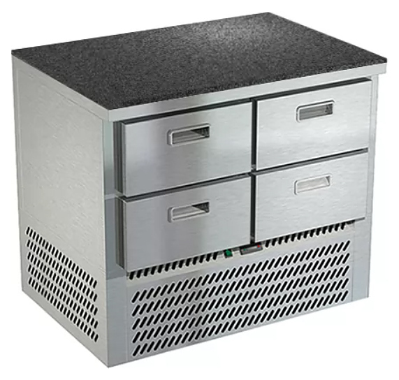 Морозильный стол Техно-ТТ СПН/М-323/04-1006 предназначен для раскатки теста, обработки, заморозки и долговременного хранения продуктов, полуфабрикатов, напитков и мороженого на предприятиях общественного питания и торговли. Модель оснащена компрессором, произведенным в Испании, 4 гастронормированными ящиками, направляющими с доводчиками (Австрия) и регулируемыми опорными ножками. Корпус выполнен из нержавеющей стали AISI 430, задняя стенка и дно - из оцинкованной стали, столешница - каменная.