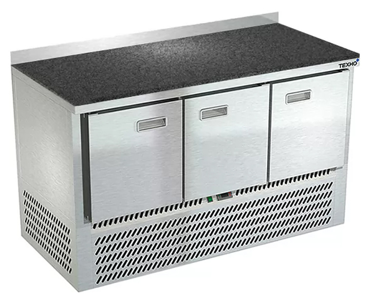 Морозильный стол Техно-ТТ СПН/М-421/30-1407 предназначен для раскатки теста, обработки, заморозки и долговременного хранения продуктов, полуфабрикатов, напитков и мороженого на предприятиях общественного питания и торговли. Модель оснащена компрессором, произведенным в Испании, 3 дверями с доводчиками (Польша), 3 регулируемыми по высоте полками-решетками и регулируемыми опорными ножками. Корпус выполнен из нержавеющей стали AISI 430, задняя стенка и дно - из оцинкованной стали, столешница - каменная.