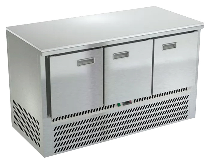 Морозильный стол Техно-ТТ СПН/М-521/30-1407 предназначен для раскатки теста, обработки, заморозки и долговременного хранения продуктов, полуфабрикатов, напитков и мороженого на предприятиях общественного питания и торговли. Модель оснащена компрессором, произведенным в Испании, 3 дверями с доводчиками (Польша), 3 регулируемыми по высоте полками-решетками и регулируемыми опорными ножками. Корпус выполнен из нержавеющей стали AISI 430, задняя стенка и дно - из оцинкованной стали, столешница - из полипропилена.