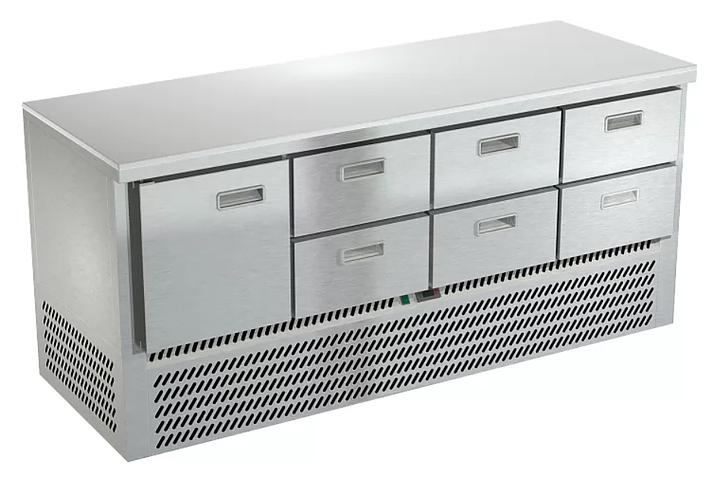 Морозильный стол Техно-ТТ СПН/М-522/16-1906 предназначен для раскатки теста, обработки, заморозки и долговременного хранения продуктов, полуфабрикатов, напитков и мороженого на предприятиях общественного питания и торговли. Модель оснащена компрессором, произведенным в Испании, 1 дверью с доводчиком (Польша), 1 регулируемой по высоте полкой-решеткой, 6 гастронормированными ящиками, направляющими с доводчиками (Австрия) и регулируемыми опорными ножками. Корпус выполнен из нержавеющей стали AISI 430, задняя стенка и дно - из оцинкованной стали, столешница - из полипропилена.