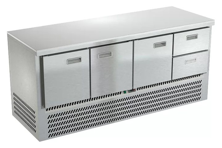 Морозильный стол Техно-ТТ СПН/М-522/32-1907 предназначен для раскатки теста, обработки, заморозки и долговременного хранения продуктов, полуфабрикатов, напитков и мороженого на предприятиях общественного питания и торговли. Модель оснащена компрессором, произведенным в Испании, 3 дверями с доводчиками (Польша), 3 регулируемыми по высоте полками-решетками, 2 гастронормированными ящиками, направляющими с доводчиками (Австрия) и регулируемыми опорными ножками. Корпус выполнен из нержавеющей стали AISI 430, задняя стенка и дно - из оцинкованной стали, столешница - из полипропилена.
