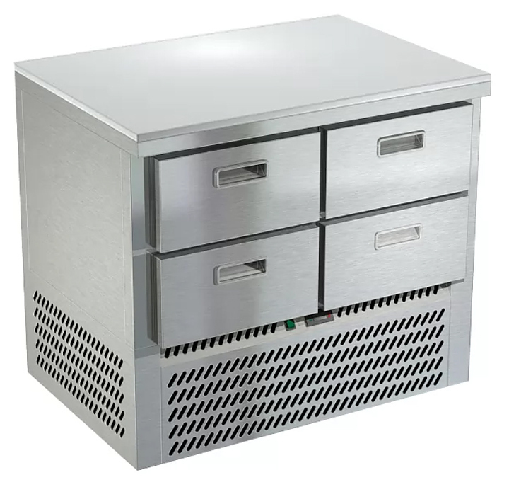Морозильный стол Техно-ТТ СПН/М-523/04-1007 предназначен для раскатки теста, обработки, заморозки и долговременного хранения продуктов, полуфабрикатов, напитков и мороженого на предприятиях общественного питания и торговли. Модель оснащена компрессором, произведенным в Испании, 4 гастронормированными ящиками, направляющими с доводчиками (Австрия) и регулируемыми опорными ножками. Корпус выполнен из нержавеющей стали AISI 430, задняя стенка и дно - из оцинкованной стали, столешница - из полипропилена.