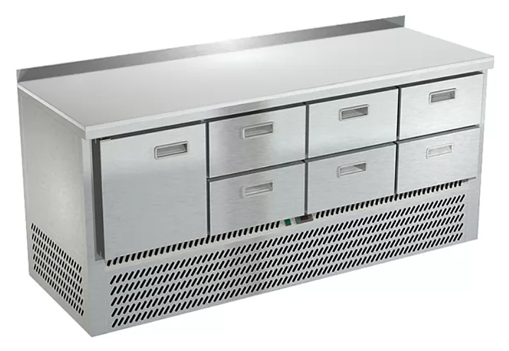 Морозильный стол Техно-ТТ СПН/М-622/16-1907 предназначен для раскатки теста, обработки, заморозки и долговременного хранения продуктов, полуфабрикатов, напитков и мороженого на предприятиях общественного питания и торговли. Модель оснащена компрессором, произведенным в Испании, 1 дверью с доводчиком (Польша), 1 регулируемой по высоте полкой-решеткой, 6 гастронормированными ящиками, направляющими с доводчиками (Австрия) и регулируемыми опорными ножками. Корпус выполнен из нержавеющей стали AISI 430, задняя стенка и дно - из оцинкованной стали, столешница - из полипропилена.