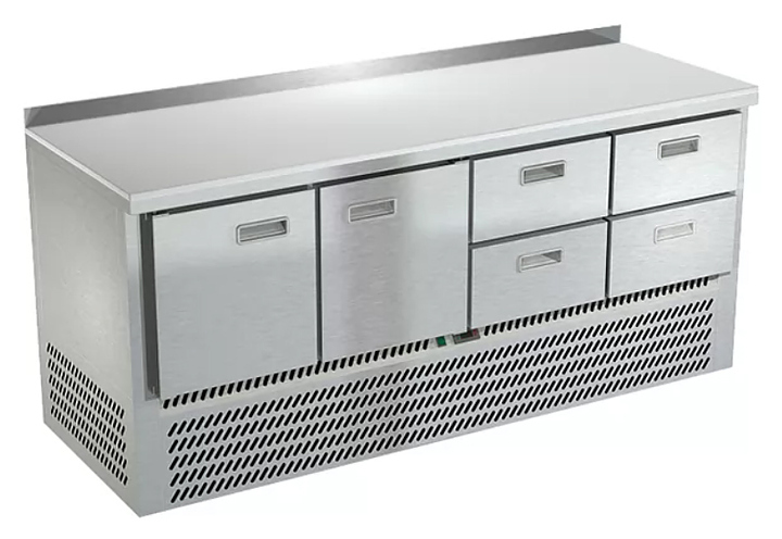 Морозильный стол Техно-ТТ СПН/М-622/24-1906 предназначен для раскатки теста, обработки, заморозки и долговременного хранения продуктов, полуфабрикатов, напитков и мороженого на предприятиях общественного питания и торговли. Модель оснащена компрессором, произведенным в Испании, 2 дверями с доводчиками (Польша), 2 регулируемыми по высоте полками-решетками, 4 гастронормированными ящиками, направляющими с доводчиками (Австрия) и регулируемыми опорными ножками. Корпус выполнен из нержавеющей стали AISI 430, задняя стенка и дно - из оцинкованной стали, столешница - из полипропилена.
