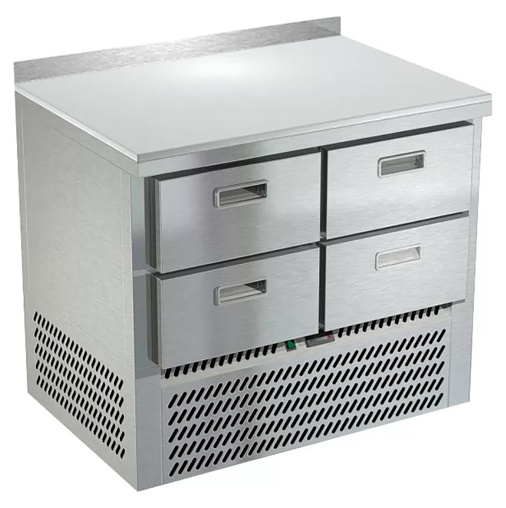 Морозильный стол Техно-ТТ СПН/М-623/04-1007 предназначен для раскатки теста, обработки, заморозки и долговременного хранения продуктов, полуфабрикатов, напитков и мороженого на предприятиях общественного питания и торговли. Модель оснащена компрессором, произведенным в Испании, 4 гастронормированными ящиками, направляющими с доводчиками (Австрия) и регулируемыми опорными ножками. Корпус выполнен из нержавеющей стали AISI 430, задняя стенка и дно - из оцинкованной стали, столешница - из полипропилена.