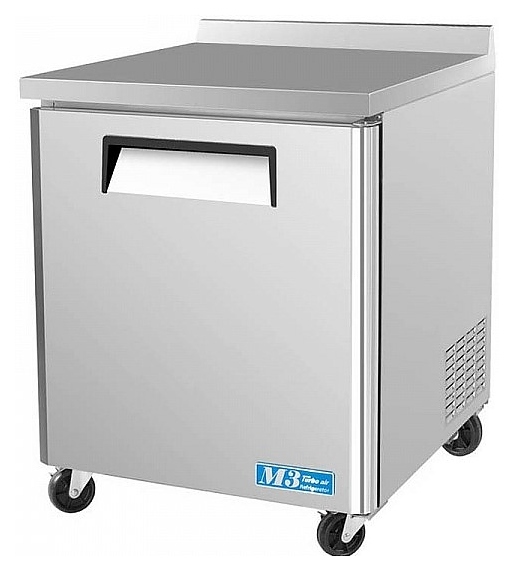 Морозильный стол Turbo air CMWF-28 предназначен для обработки, охлаждения, заморозки и длительного хранения пищевых продуктов на предприятиях общественного питания и торговли. Модель оснащена дверцей, регулируемой полкой, эргономичной ручкой и 4 колесами. Корпус выполнен из нержавеющей стали (гальванизированная сталь на оборотной стороне и внизу), пол - из нержавеющей стали с алюминиевыми вставками по бокам и сзади, полка - из толстой стальной проволоки с виниловым покрытием, петли - из нержавеющей стали.