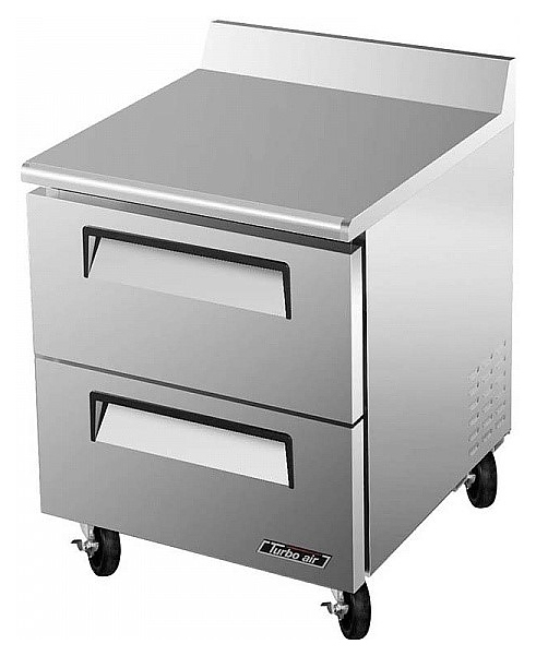 Морозильный стол Turbo air CMWF-28-2D-2 предназначен для обработки, охлаждения, заморозки и длительного хранения пищевых продуктов на предприятиях общественного питания и торговли. Модель оснащена 2 ящиками с эргономичными ручками и 4 колесами. Корпус выполнен из нержавеющей стали (гальванизированная сталь на оборотной стороне и внизу), пол - из нержавеющей стали с алюминиевыми вставками по бокам и сзади, тройные направляющие ящиков - из высококачественной нержавеющей стали.
