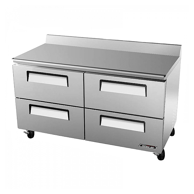 Морозильный стол Turbo air CMWF-60-2D-4 предназначен для обработки, охлаждения, заморозки и длительного хранения пищевых продуктов на предприятиях общественного питания и торговли. Модель оснащена 4 ящиками с эргономичными ручками и 4 колесами. Корпус выполнен из нержавеющей стали (гальванизированная сталь на оборотной стороне и внизу), пол - из нержавеющей стали с алюминиевыми вставками по бокам и сзади, тройные направляющие ящиков - из нержавеющей стали.