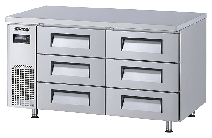 Морозильный стол Turbo air KUF15-3D-6 состоит из рабочей поверхности, на которой можно раскатывать тесто и обрабатывать ингредиенты для приготовления блюд, и камеры, предназначенной для заморозки и хранения продуктов, полуфабрикатов и мороженого на предприятиях пищевой промышленности, общественного питания и торговли. Корпус выполнен из нержавеющей стали с применением пожаробезопасных стенок толщиной 60 мм и уплотнения из теплоэффективного АБС-пластика (акрилонитрилбутадиенстирола), не пропускающего конденсата, оборотная сторона и низ - из гальванизированной стали, пол - из нержавеющей стали с алюминиевыми вставками по бокам и сзади, 4 регулируемые ножки - из нержавеющей стали.