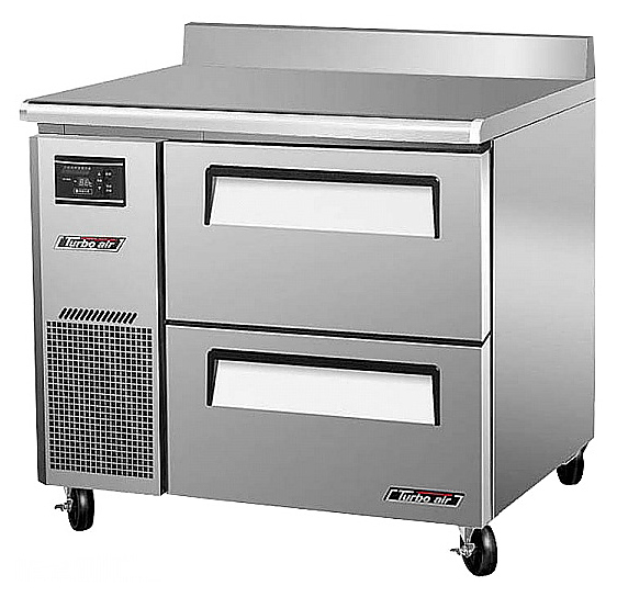 Морозильный стол Turbo air KWF9-2D-2-750 предназначен для обработки, охлаждения, заморозки и длительного хранения пищевых продуктов на предприятиях общественного питания и торговли. Модель оснащена 2 ящиками и 4 колесами. Корпус выполнен из нержавеющей стали (гальванизированная сталь на оборотной стороне и внизу), пол - из нержавеющей стали с алюминиевыми вставками по бокам и сзади, тройные направляющие - из высококачественной нержавеющей стали, уплотнение - из ABS-пластика.