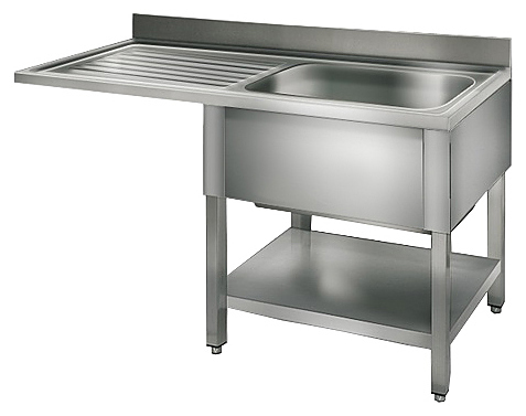Стол-мойка Kocateq STR127SBR1 используется на предприятиях общественного питания и торговли для установки с правой стороны посудомоечной машины, предварительного ополаскивания посуды. Каркас, столешница и нижняя полка выполнены из нержавеющей стали толщиной 1,5 мм, ножки - из трубы квадратного сечения 40x40 мм, пятки - из нескользящего пластика.