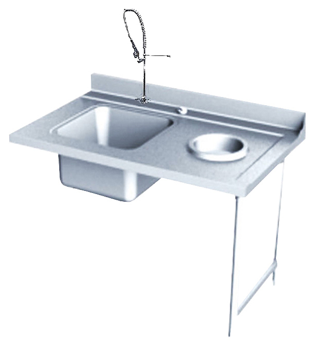 Стол-мойка с душем Kocateq HTC48R используется на предприятиях общественного питания и торговли для установки с правой стороны посудомоечной машины, предварительного очистки посуды от остатков пищи. Корпус выполнен из нержавеющей стали AISI 304.