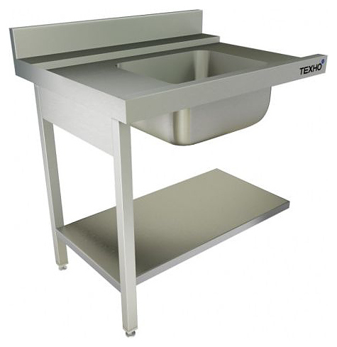 Навесной стол Техно-ТТ СПК-523/1507П ?предназначен для совместного использования с посудомоечными машинами Apach для расстановки и хранения посуды и кухонного инвентаря, а также для мытья и ополаскивания продуктов и посуды в моечных отделениях на предприятиях общественного питания и торговли. Модель оснащена цельнотянутой мойкой, бортом, полкой и регулируемыми по высоте ножками. Разборный каркас выполнен из трубы 40х40х1,2 мм нержавеющей стали AISI 304, емкость цельнотянутая - из нержавеющей стали AISI 304, полка - из нержавеющей стали AISI 430.