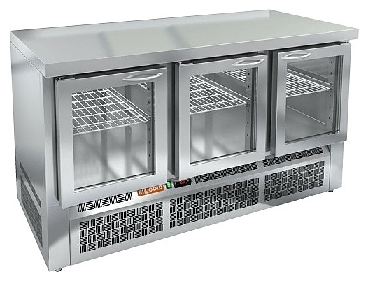 Охлаждаемый стол HICOLD GNEG 111 HT О состоит из рабочей поверхности, на которой можно раскатывать тесто и обрабатывать ингредиенты для приготовления блюд, и камеры, предназначенной для охлаждения и кратковременного хранения скоропортящихся продуктов и напитков на предприятиях общественного питания и торговли. Модель оснащена 3 полками и регулируемыми по высоте ножками. Корпус и столешница выполнены из нержавеющей стали.