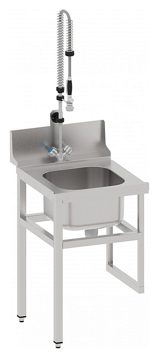 Конструкция разборная, выполнена из высококачественной нержавеющей стали AISI 304. К посудомоечной машине крепится с помощью верхнего зацепа и нижних винтов