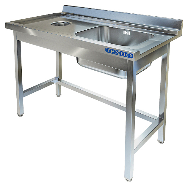 Приставной к посудомоечной машине стол Техно-ТТ СПО-522/1207П/ПравКр используется на предприятиях общественного питания и торговли для мытья и ополаскивания посуды и различного инвентаря. Модель оснащена отверстием для сбора отходов, расположенным справа, моечной ванной слева и регулируемыми по высоте ножками, что позволяет компенсировать неровности пола. Разборный каркас выполнен из трубы 40х40 нержавеющей стали AISI 304, обвязка - из трубы 40х20 нержавеющей стали AISI 304, цельнотянутая мойка и столешница - из нержавеющей стали AISI 304.