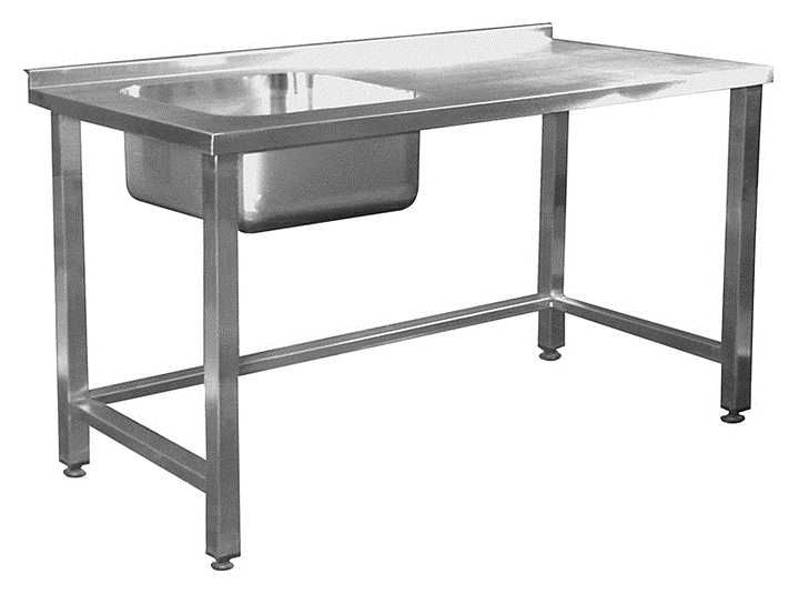 Приставной стол Техно-ТТ СПМ-532/907Л предназначен для совместного использования с посудомоечными машинами для расстановки и хранения посуды и кухонного инвентаря, а также для мытья и ополаскивания продуктов и посуды в моечных отделениях на предприятиях общественного питания и торговли. Модель оснащена цельнотянутой емкостью, бортом и регулируемыми по высоте ножками. Разборный каркас выполнен из трубы 40х40х1,2 мм нержавеющей стали AISI 430, обвязка из трубы 40х20х1,2 мм из нержавеющей стали AISI 430 столешница и ванна - из нержавеющей стали AISI 304.