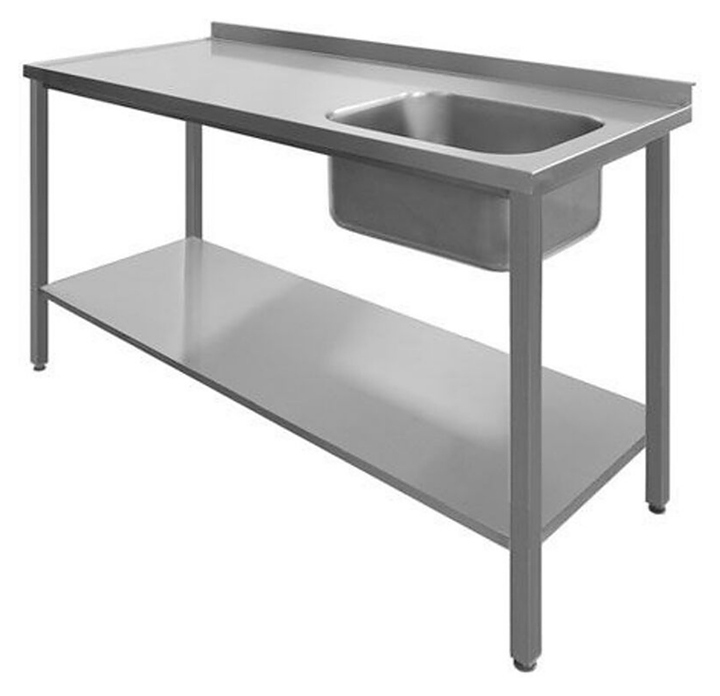 Приставной стол Техно-ТТ СПМ-533/1207П предназначен для совместного использования с посудомоечными машинами для расстановки и хранения посуды и кухонного инвентаря, а также для мытья и ополаскивания продуктов и посуды в моечных отделениях на предприятиях общественного питания и торговли. Модель оснащена цельнотянутой емкостью, бортом и регулируемыми по высоте ножками. Разборный каркас выполнен из трубы 40х40х1,2 мм нержавеющей стали AISI 430, столешница, ванна и полка - из нержавеющей стали AISI 304.