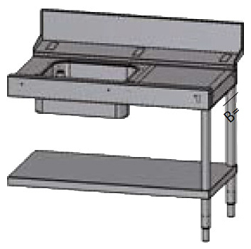 Входной стол Azimut ETS 16 M00100 предназначен для совместного использования с конвейерными посудомоечными машинами серии ETS 16, ETE, ETR, ETR M для размещения и мойки грязной посуды на предприятиях общественного питания. Модель оснащена задним бортом, мойкой, нижней сплошной полкой и 4 регулируемыми по высоте ножками. Оборудование выполнено из нержавеющей стали.