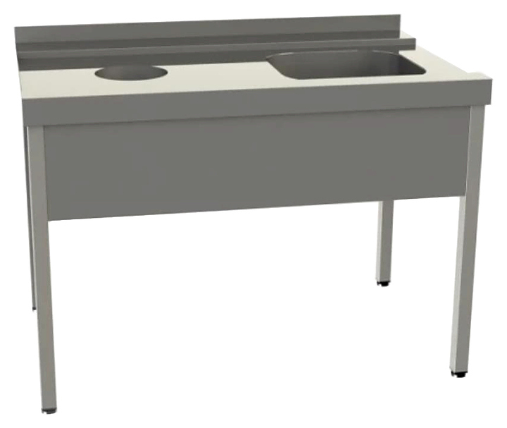 Входной стол Restoinox ВМЦРО/1-12/7,4-Б предназначен для совместного использования с посудомоечной машиной для размещения и мойки грязной посуды на предприятиях общественного питания. Модель оснащена отверстием под смеситель и регулируемыми по высоте пластиковыми опорами. Каркас выполнен из трубы 40х40 мм нержавеющей стали AISI 430, столешница - из нержавеющей стали AISI 430, цельнотянутая ванна - из нержавеющей стали AISI 304.