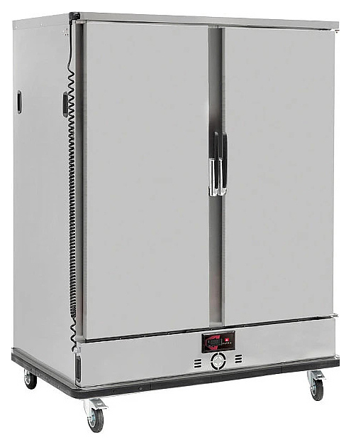 Банкетная тележка Tatra TBT 2221 H используется на предприятиях общественного питания и торговли для хранения, транспортировки и поддержания в тепловом состоянии готовых блюд в сервированных тарелках и гастроемкостях. Модель оснащена цифровым термостатом с индикацией внутренней температуры, прессованными направляющими, 2 дверьми с магнитным замком и 4 колесами, 2 из которых снабжены стопором. Корпус выполнен из нержавеющей стали с теплоизоляцией из полиуретана.