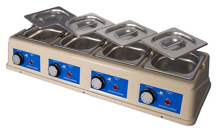 Температор ICB tecnlologie s.r.l. 09.SC4x1.5L предназначен для плавления и поддержания в горячем состоянии шоколада и глазури на предприятиях общественного питания и торговли. Модель оборудована сухой системой нагрева дна и сторон контейнеров для поддержания единой температуры. Корпус выполнен из пластика, съемные контейнеры и крышка - из нержавеющей стали.