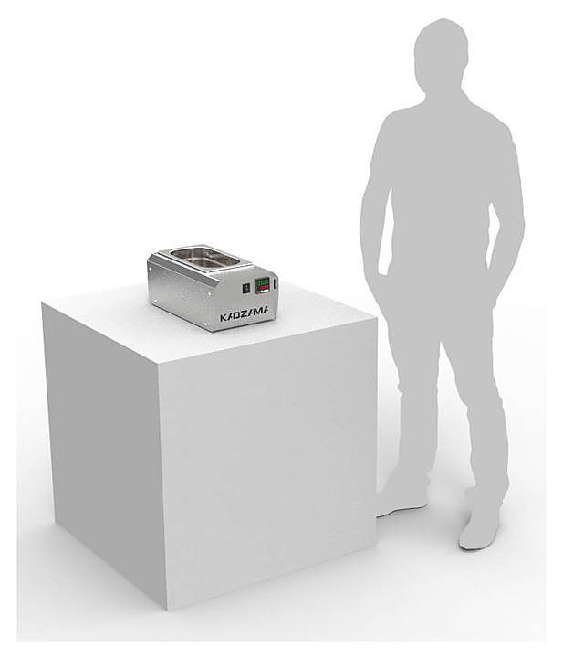 Температор Kadzama Мини предназначен для разогрева, темперирования и поддержания в горячем состоянии шоколада на предприятиях общественного питания и торговли. Модель оснащена инфракрасными нагревательными элементами, крышкой и панелью управления с дисплеем, отображающим текущую и заданную температуру. Корпус и емкость выполнены из нержавеющей стали AISI 304.