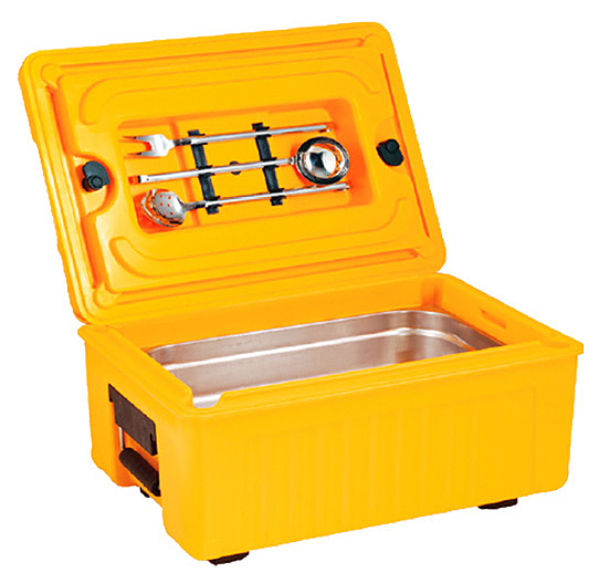 Термобокс AVATHERM 100 предназначен для перемещения горячих или холодных блюд и хранения при идеальной температуре на предприятиях общественного питания и в больничных пищеблоках. Модель оснащена съёмной крышкой с 2-мя замками, в крышке специальный отсек для приборов. Корпус и двойная стенка выполнены из пищевого полипропилена, слой изоляции - из вспененного полиуретана CFC-free.