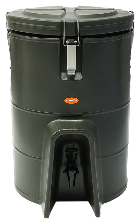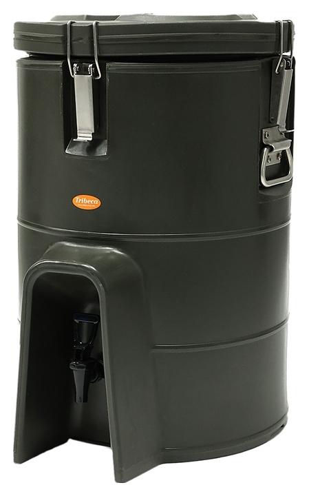 Термоконтейнер Tribeca 33 л используется службами доставки предприятий общественного питания и пищевой промышленности, а также в быту, во время туристических походов, пикника, рыбалки или дорожных путешествий для хранения и транспортировки холодных и горячих напитков в в автономных изотермических условиях. Модель оснащена краном для розлива и съемной плотно прилегающей крышкой. Корпус цилиндрической формы выполнен из высококачественного полиэтилена низкой плотности (LLDPE) цвета хаки, застежки – из нержавеющей стали, термоизоляция – из экологичного пенополиуретана высокой плотности.