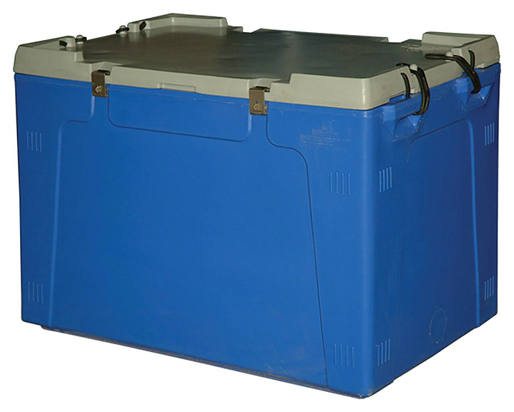 Термоконтейнер Nilkamal RIC 220 используется в рыбной, мясомолочной промышленности, птицеводстве и сельском хозяйстве для хранения и транспортировки замороженных рыбы, мяса и кондитерских изделий, мороженого, фруктов и овощей, охлажденных напитков, молочных и фармацевтических изделий, а также подходит для посола рыбы и овощей. Модель оснащена крышкой и отличается штабелированием. Корпус с двойными стенками выполнен методом ротоформовки из безопасного LLDPE пластика, изоляционное наполнение - из вспененного полиуретана.