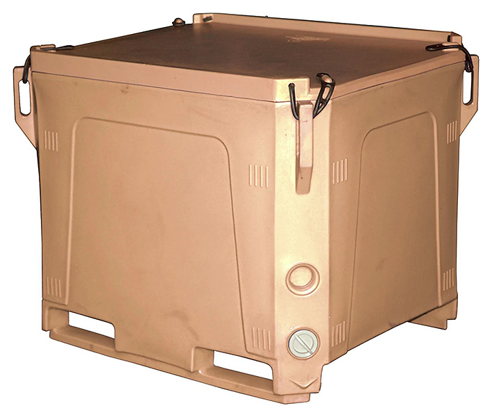 Термоконтейнер Nilkamal RIC 310 используется в рыбной, мясомолочной промышленности, птицеводстве и сельском хозяйстве для хранения и транспортировки замороженных рыбы, мяса и кондитерских изделий, мороженого, фруктов и овощей, охлажденных напитков, молочных и фармацевтических изделий, а также подходит для посола рыбы и овощей. Модель оснащена крышкой и отличается штабелированием. Корпус с двойными стенками выполнен методом ротоформовки из безопасного LLDPE пластика, изоляционное наполнение - из вспененного полиуретана.