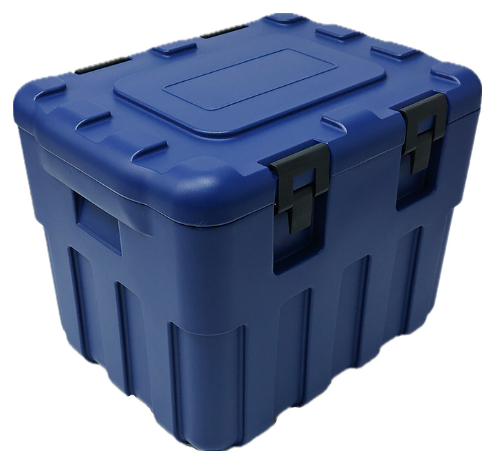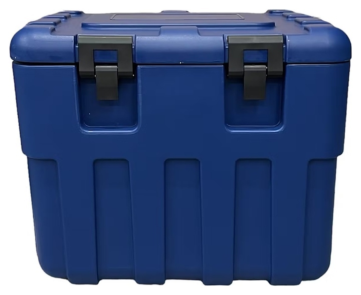 Термоконтейнер Tribeca 85 л используется службами доставки предприятий общественного питания и пищевой промышленности, а также в быту, во время туристических походов, пикника, рыбалки или дорожных путешествий для хранения и транспортировки приготовленных блюд, льда, свежих фруктов и других пищевых продуктов в автономных изотермических условиях. Модель прямоугольно ориентированной формы оснащена съемной плотно прилегающей крышкой. Корпус выполнен из высококачественного полиэтилена низкой плотности (LLDPE) синего цвета, застежки – из прочного нейлона (PA6), термоизоляция – из экологичного пенополиуретана высокой плотности.