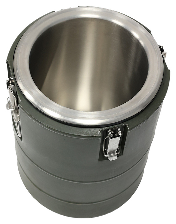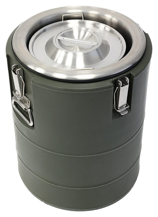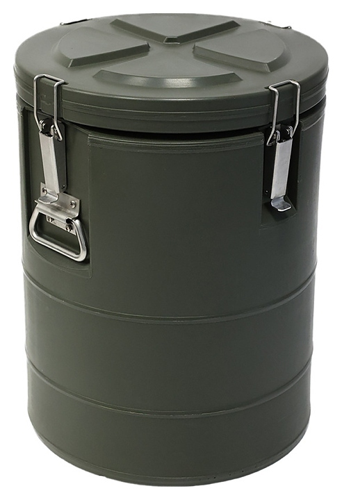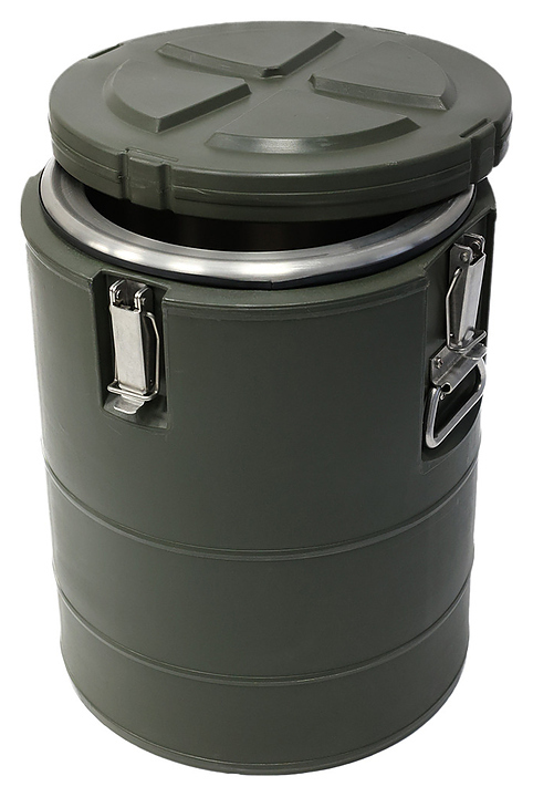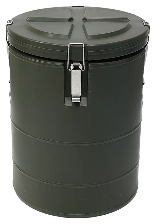 Термоконтейнер Tribeca 33 л используется службами доставки предприятий общественного питания и пищевой промышленности, а также в быту, во время туристических походов, пикника, рыбалки или дорожных путешествий для хранения и транспортировки холодных и горячих пищевых продуктов в в автономных изотермических условиях. Модель оснащена краном для розлива и съемной плотно прилегающей крышкой. Корпус цилиндрической формы выполнен из высококачественного полиэтилена низкой плотности (LLDPE) цвета хаки, застежки – из нержавеющей стали, термоизоляция – из экологичного пенополиуретана высокой плотности.