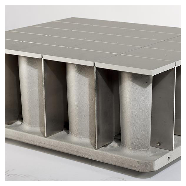 Ножи выполнены из нержавеющей стали, прижимные формы - из чугуна с антиадгезионным тефлоновым покрытием.