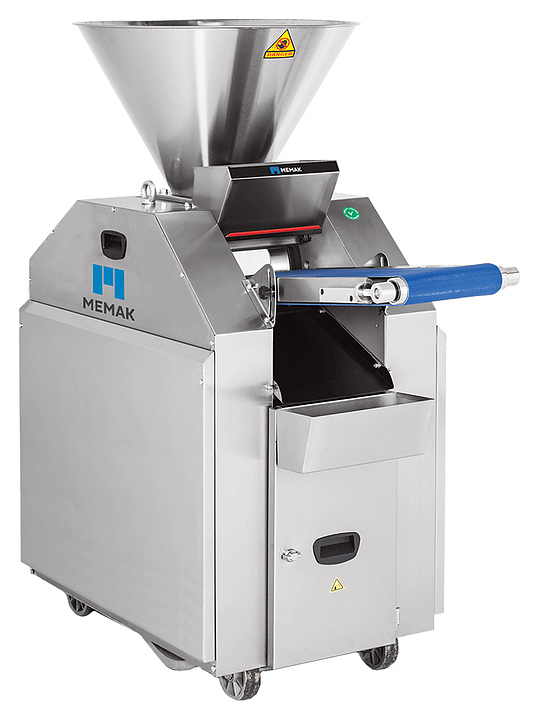 Тестоделитель Memak VDD 110 предназначен для деления тестовых заготовок на порции на предприятиях общественного питания и торговли. Модель оснащена резервуаром для муки, счетчиком-дозатором для теста и колесами, облегчающими передвижение. Крышка и воронка выполнены из нержавеющей стали.