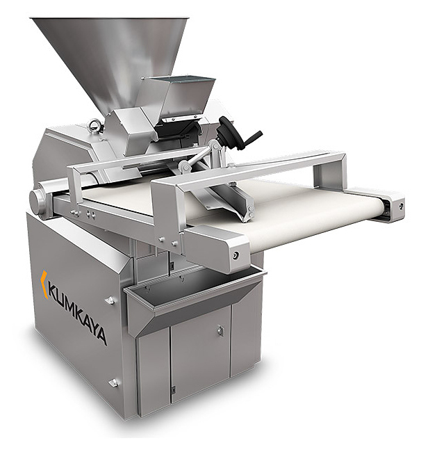 Однопоршневой тестоделитель Kumkaya DM 2000 P предназначен для деления тестовых заготовок на порции на предприятиях общественного питания и торговли. Модель оснащена регулируемой вакуумной камерой, очистителем ленты, контейнером для сбора муки и колесами, облегчающими передвижение. Корпус, бункер и конвейер выполнены из нержавеющей стали.