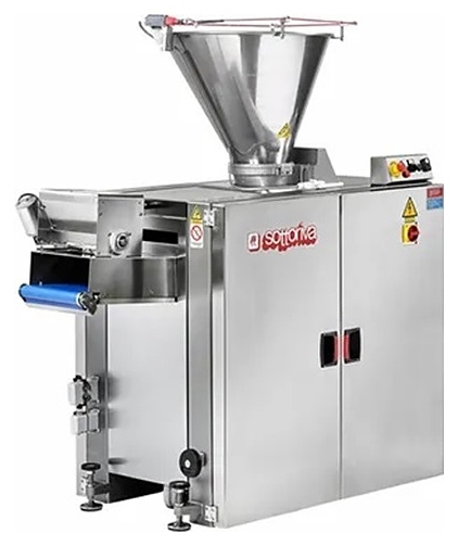 Автоматический поршневой тестоделитель Sottoriva ZERO 5 используется в пекарнях, кондитерских, пиццериях, на других предприятиях пищевой промышленности, общественного питания и торговли для дозированного деления мягкого теста с большим процентным содержанием воды до 75-80% на заготовки для производства чиабатты, мелкоштучных удлиненных изделий и домашнего хлеба. Модель оснащена воронкообразной загрузочной горловиной, ленточным конвейером, регулируемым маховиком и электромеханической панелью управления. Облицовка корпуса и горловина выполнены из нержавеющей стали марки AISI 304.