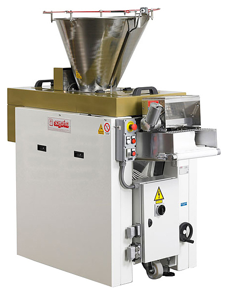 Тестоделитель Sottoriva SVP08/3-R используется на предприятиях пищевой промышленности, общественного питания и торговли для деления тестовых заготовок на порции. Размеры заготовок регулируются по объему вращением маховичка. Модель оснащена отдельным мотором для выходного конвейера, вариатором частоты вращения и встроенным автоматическим распылителем муки. Загрузочный бункер выполнен из нержавеющей стали.