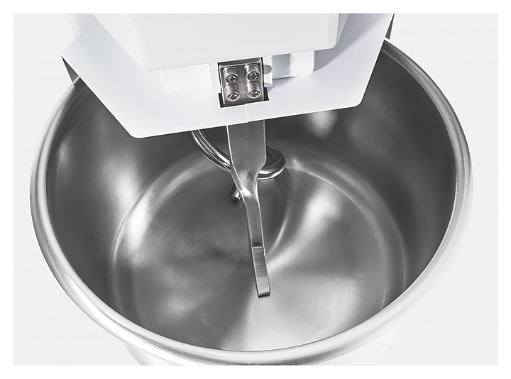 Корпус выполнен из высококачественной конструкционной стали с полимерным покрытием, металлические детали машины, контактирующие с продуктом во время замеса (спираль, дежа, нож) - из нержавеющей стали AISI 304.