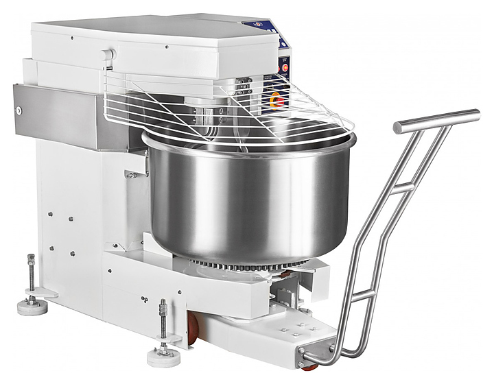 Корпус выполнен из высококачественной конструкционной стали с полимерным покрытием, металлические детали машины, контактирующие с продуктом во время замеса (спираль, дежа, нож) - из нержавеющей стали AISI 304.
