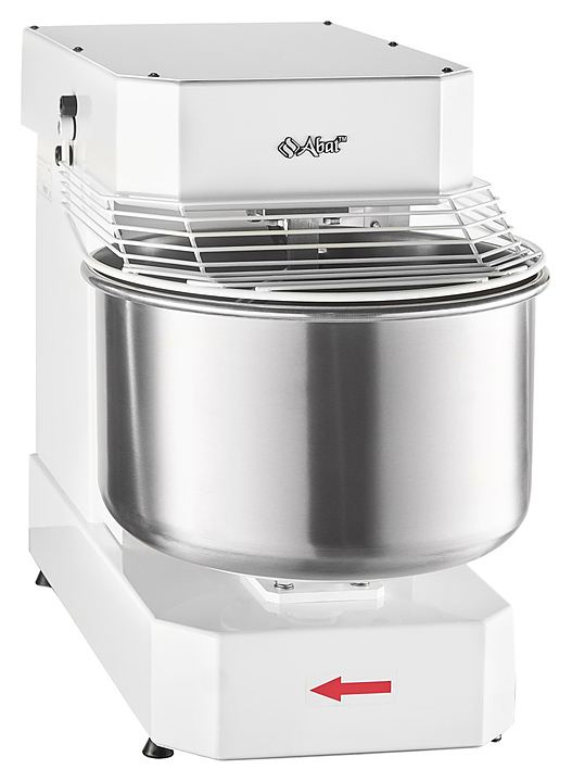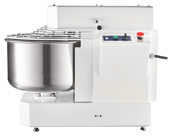 Корпус выполнен из высококачественной конструкционной стали с полимерным покрытием, металлические детали машины, контактирующие с продуктом во время замеса (спираль, дежа, нож) - из нержавеющей стали AISI 304.